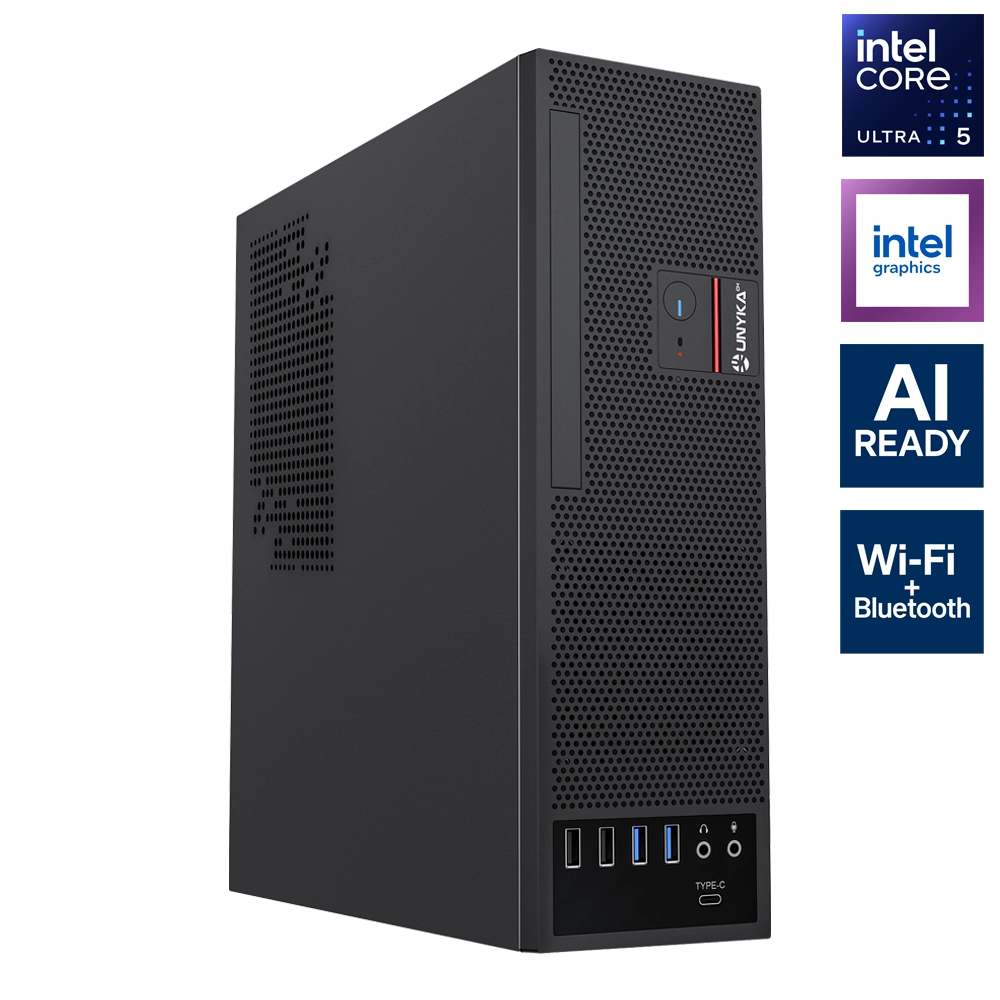 Este PC compacto para oficina está equipado con el moderno procesador Intel Core Ultra 5 225, 16GB de memoria DDR5 ultrarrápida y un disco SSD de 500GB, lo que garantiza un rendimiento fluido y ágil en tareas diarias como: